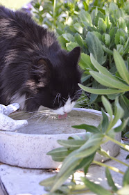 Katterna dricker ur fågelbadet flera gånger per dag, trots mina protester....