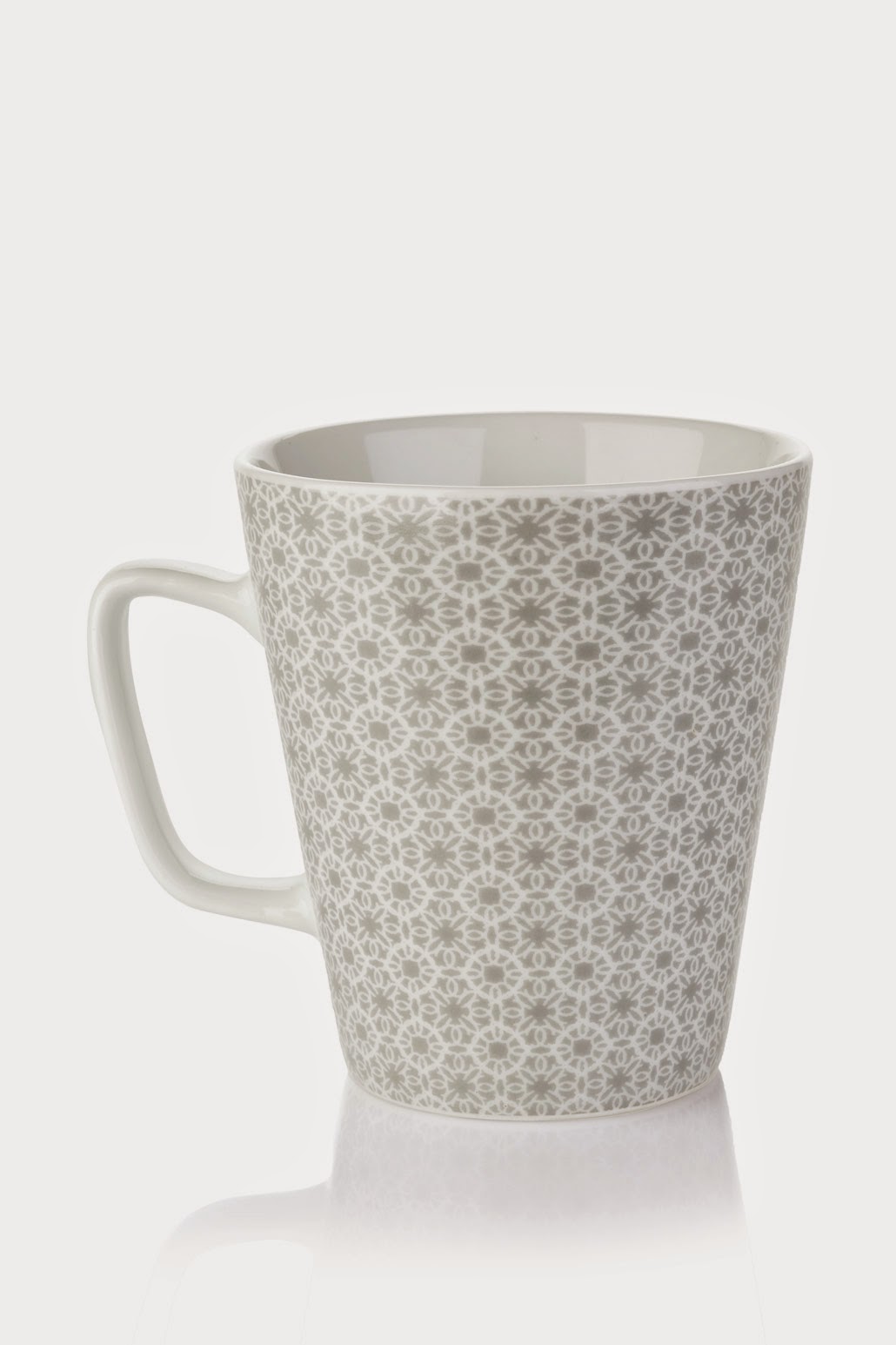 Och denna mugg. Underbart mönster i exakt den gråa tonen som jag gillar. Åtta stycken av dessa skulle jag inte heller tacka nej till. HÄR skulle jag gärna sitta med en väninna -drickandes en varm kopp te- ur dessa fina muggar...